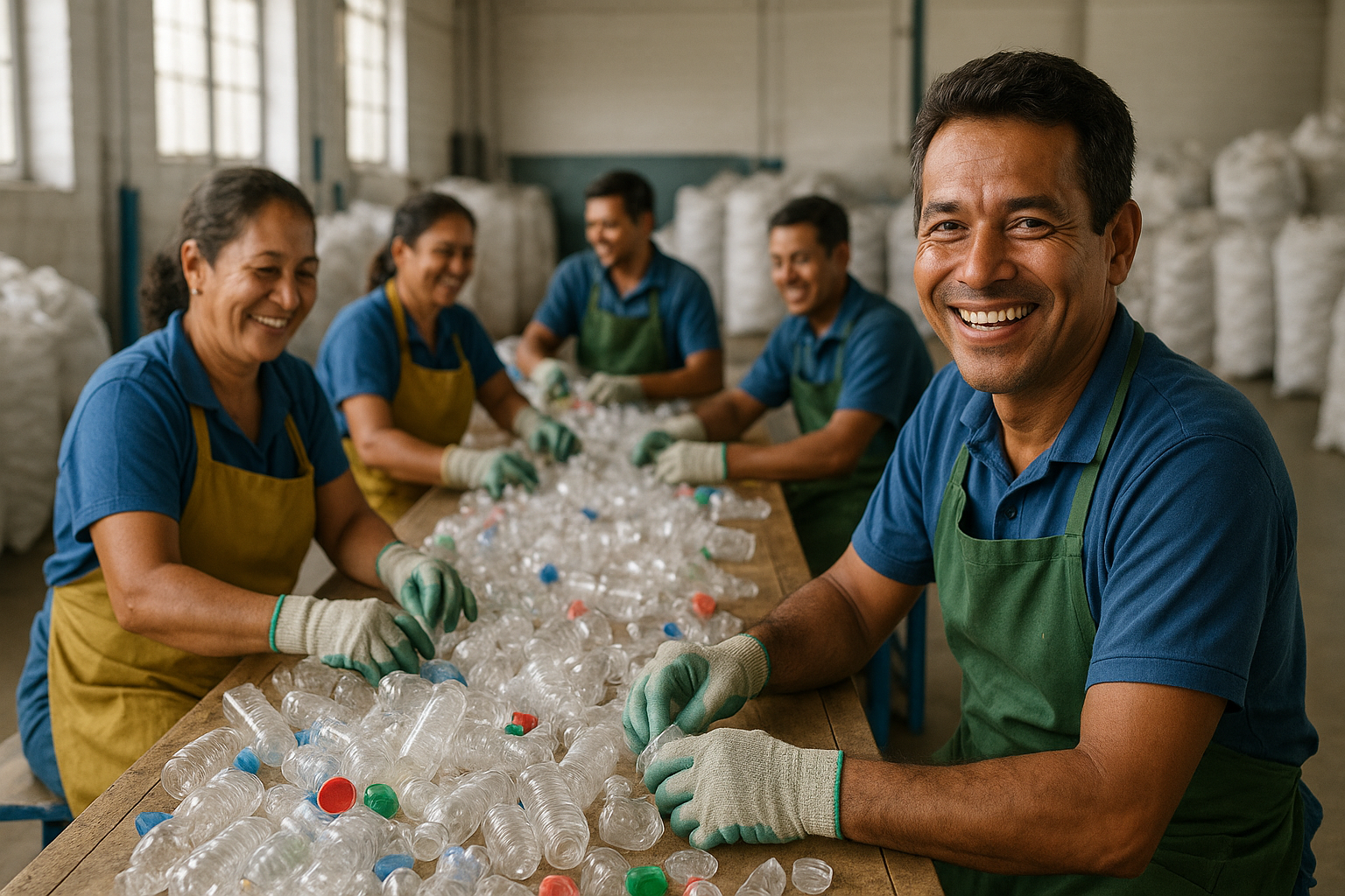 We bieden eerlijke jobs aan mensen in getroffen gebieden om plastic op te ruimen en te sorteren.